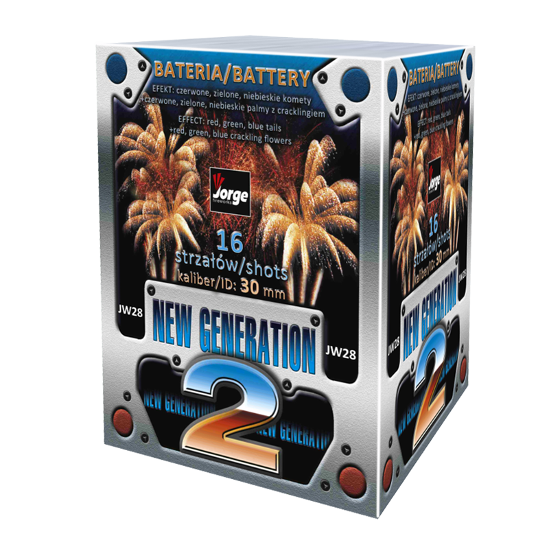 Die „New Generation 2“ steht für kraftvolle Effekte und brillante Farben in kompakter Form! Diese 16-Schuss-Feuerwerksbatterie begeistert mit einer eindrucksvollen Mischung aus roten, grünen und blauen Kometen, die sich zu prachtvollen Palmen-Effekten entfalten – gekrönt von intensivem Crackling im Finale.