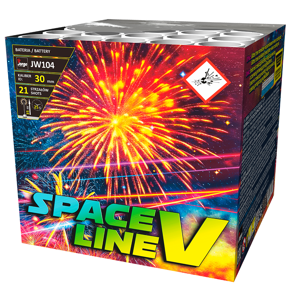 Die Space Line V liefert in 25 Sekunden eine elegante und zugleich intensive Effektkombination, die jede Show optisch veredelt. Majestätische Glitter-Regenweiden füllen den Himmel mit funkelnden, sanft herabfallenden Effekten. Dazu erscheinen strahlend rote Blüten, die einen kräftigen Farbakzent setzen. Abgerundet wird das Bild durch einen silbernen Knisterschweif, der jedem Schuss eine lebendige, dynamische Textur verleiht.